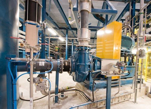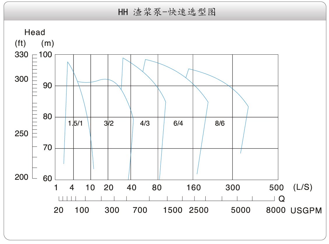 該系列泵為臥式、垂直中形式、雙泵殼結(jié)構(gòu)渣漿泵。泵體和泵蓋帶有可更換的金屬內(nèi)襯,內(nèi)襯材質(zhì)為高鉻耐磨合金材料,內(nèi)襯可一直用到磨穿為止,延長維修周期,降低運行成本。泵的出口方向可按8個角度旋轉(zhuǎn)安裝。泵的軸承組件采用圓筒式結(jié)構(gòu),便于調(diào)整葉輪與前護(hù)板的間隙,維修時可整體拆出。軸承采用油脂潤滑。可采用多級串聯(lián)技術(shù),以滿足遠(yuǎn)距離輸送。